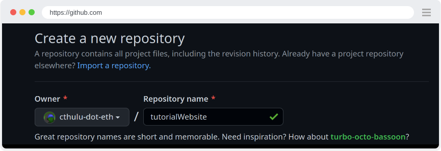 Then choose a name for the repository