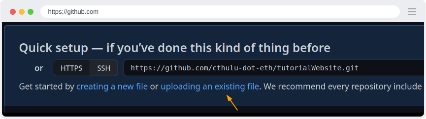 On the next screen, click the link Uploading an existing file